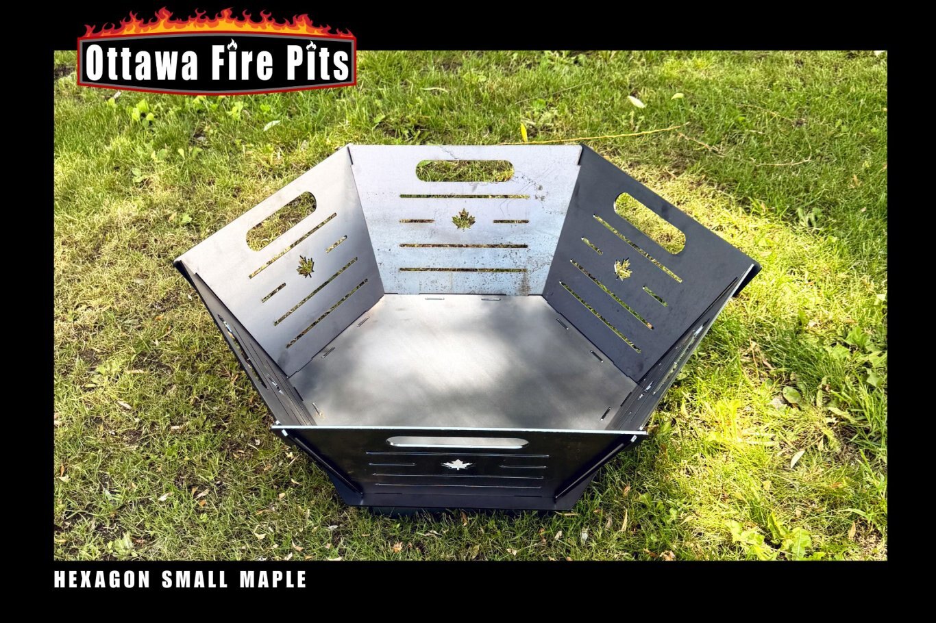 The Small Maple Hexagon Fire Pit blends timeless Canadian design with rugged steel construction, bringing cozy warmth and maple-leaf charm to patios, cottages, and backyards alike. Compact, sturdy, and full of character — it’s built to be the centerpiece of every evening fire.